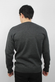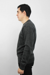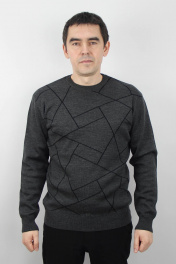 Джемпер мужской второго слоя одежды, прямого силуэта, с длинным втачным рукавом. Круглый вырез горловины обработан двойной бейкой (полукеттлевка) ластик 1х1 высотой в г.в. 2,3 ± 0,3см. Низ изделия и рукавов заработан ластиком 1х1 высотой в г.в. 6,0 ± 0,5см. По низу рукавов и стана проложена пряжа "Новинка" 110т.