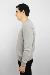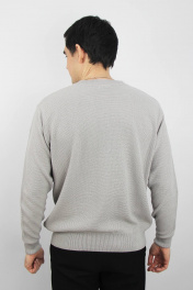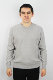 Джемпер второго слоя одежды, прямого силуэта, с длинным втачным рукавом. Низ изделия и рукавов заработан ластиком 1х1 высотой в г.в. 6,5±0.5см., по краю заработка проложена пряжа "Новинка" 110т. V-образный вырез горловины обработан двойной бейкой (п/кеттл.) ластик 1х1 высотой в г.в. 3,0±0.3см