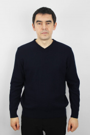 Джемпер второго слоя одежды, прямого силуэта, с длинным втачным рукавом. Низ изделия и рукавов заработан ластиком 1х1 высотой в г.в. 6,5±0.5см., по краю заработка проложена пряжа "Новинка" 110т. V-образный вырез горловины обработан двойной бейкой (п/кеттл.) ластик 1х1 высотой в г.в. 3,0±0.3см