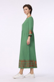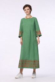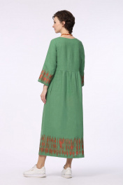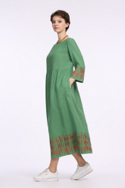 Необычная текстура льна привлекает внимание. Платье из такого материала выглядит одновременно и просто, и элегантно. Платье полуприлегающего силуэта декорировано ручной художественной росписью из льна 100%, умягченное, вываренное, не садится при стирке. Вырез горловины "каре", сборочка по линии талии, широкая подгибка по низу изделия. Рукав втачной, длина 3/4, с локтевой вытачкой. Карманы расположены в боковых швах. Без застёжки.