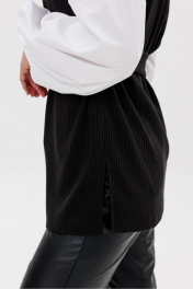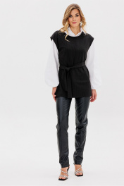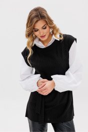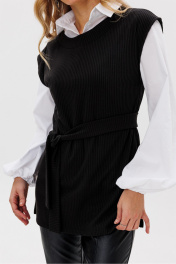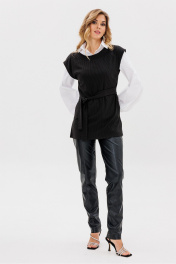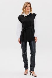 Жилетка женская из трикотажной ткани "лапша". В боковых швах расположены разрезы. Пояс входит в комплект. Промеры на примере 42 р.: Длина изделия по спинке 71 см. ОГ - 90 см, ОБ 94 см.