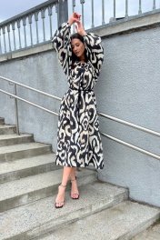 Платье женское Х- силуэта выполнено из крапивы с рукавами реглан и декоративной сборкой по горловине; по бокам функциональные карманы. Изделие дополнено платьем-комбинацией из легкого хлопка на регулируемых бретелях. Имеется декоративный съёмный пояс.