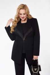 Длинный черный жакет с рельефами и отделкой из ткани Pretty 5115 черный