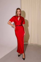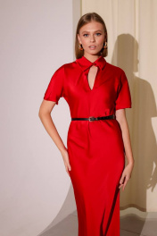 Красное сатиновое платье приталенного силуэта с вырезом капелька PUR PUR 11-195/8