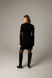 Платье-трансформер полуприлегающего силэта из эластичного плотного трикотажа. Рукава съемные,которые крепятся на пуговицы. Сзади на платье талиевые вытачки. Платье подойдет на любую фигуру,засчет плотного трикотажа будут подчеркнуты только все прелести фигуры.