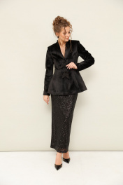 Юбка, декорированная пайетками, на подкладке. Пояс на резинке, хорошо тянется. Юбка прямого полуприлегающего силуэта.