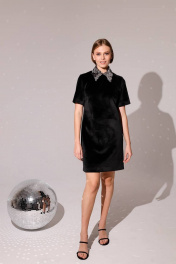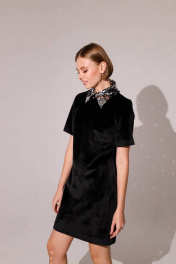 Платье из плотного велюра с пайетками и съемным воротником PUR PUR 11-260