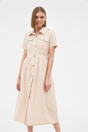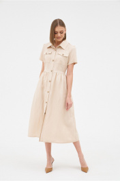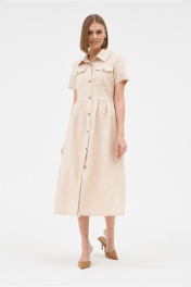 Платье из бежевого льна с разрезом и застежкой на пуговицах PUR PUR 11-310