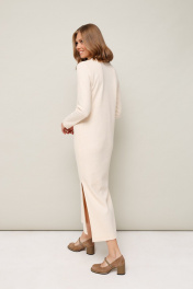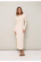 Стильное платье полуприлегающего силуэта, выполнено из трикотажного полотна. Горловина округлой формы, с центральной застежкой на петли и 4 разных пуговицы. Рукава длинные втачные. В боковых швах обработаны высокие разрезы.