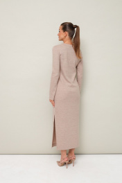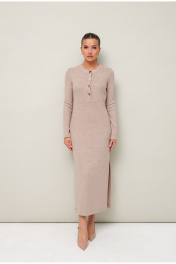 Стильное платье полуприлегающего силуэта, выполнено из трикотажного полотна. Горловина округлой формы, с центральной застежкой на петли и 4 разных пуговицы. Рукава длинные втачные. В боковых швах обработаны высокие разрезы.