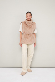 Стильный жилет прямого силуэта, выполнен из искусственного меха на подкладке. Цельнокроеный воротник-стойка. Идеальный выбор для холодных дней, который сочетает в себе комфорт, тепло и актуальный дизайн. *Ремень представлен как вариант стилизации образа.
