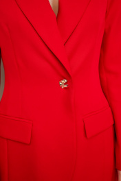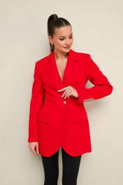 Стильный жакет полуприлегающего силуэта, выполнен из костюмной ткани. Смещенная застежка на петлю и пуговицу. Воротник пиджачного типа с отложными лацканами, край борта скругленный по низу жакета. Спереди обработаны прорезные карманы в рамку с клапанами. Рукава втачные, двухшовные со шлицами с застежкой на петли и пуговицы. Спинка с рельефами и средним швом. Жакет на подкладке