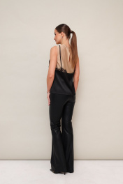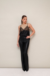 Элегантная блузка прямого силуэта в бельевом стиле. Блузка с округлым вырезом горловины, спереди выполнена имитация чашки из французского кружева на бретельках. Спинка с застёжкой в разрезе на навесную петлю и пуговицу. Блузка создает основу для вечерних и повседневных образов в вашем гардеробе.