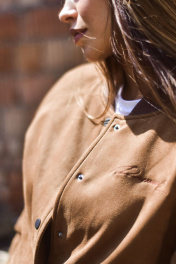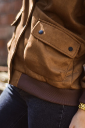 *** Чтобы подобрать размер, воспользуйтесь таблицей замеров! Бомбер женский повседневный прямого силуэта, покроя реглан. Застежка центральная на разъемные кнопки. Перед прямой с горизонтальными карманами. Спинка прямая. Рукава двухшовные покроя реглан. Пояс, манжеты рукава и воротник-стойка выполнены из трикотажного полотна резинка. На левой части переда в области груди вышивка -фирменный логотип.