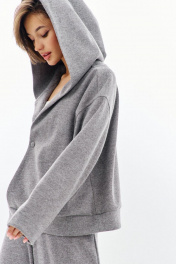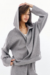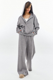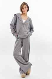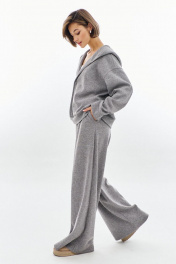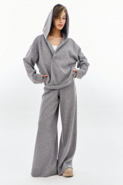 Комплект (джемпер + брюки). Джемпер свободного кроя на запах: - спущенная линия плеча - горловина с двойным объемным капюшоном - застежка на кнопку - рукава втачные Брюки палаццо: - притачной пояс на резинке - карманы с наклонным входом