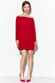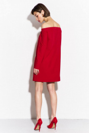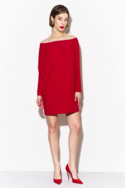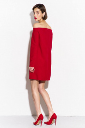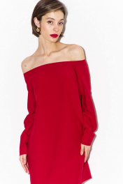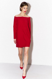 Платье свободного кроя: -длина до середины бедра -спинка с застежкой на потайной тесьме-«молнии» -платье с открытой линией плеча -рукава втачные, одношовные, длинные.