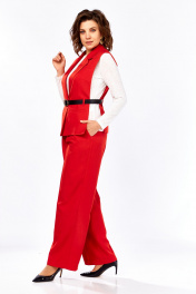 Женский костюм с жилетом и брюками-палаццо Элегантный костюм, созданный для уверенных и стильных женщин, которые ценят комфорт и изысканность. - Жилет: приталенный крой подчёркивает линии силуэта, а V-образный вырез визуально удлиняет шею и делает образ более утончённым. Застёжка на потайные кнопки добавляет аккуратности и минимализма. - Брюки-палаццо: свободный фасон корректирует фигуру, подходит для строгого дресс-кода и дарит ощущение лёгкости. Вертикальные линии по центру брючин вытягивают силуэт и визуально удлиняют ноги. - Детали: верх брюк выполнен на притачном поясе с классической застёжкой — молния и пуговица. В комплект входит съёмный пояс, который позволяет менять акценты и создавать новые образы. 💼 Этот костюм — идеальное решение для деловых встреч, офисного стиля и торжественных мероприятий. Он подчеркнёт вашу индивидуальность, добавит элегантности и станет универсальной базой гардероба. измерения измерения изделия в готовом виде, см 46 48 50 ширина по груди переда жилета 35,5 36 36,5 ширина по груди спинки жилета 39,5 40 40,5 ширина по низу переда жилета 42,5 43 43,5 ширина по низу спинки жилета 41,5 42 42,5 ширина по талии переда жилета 36 36,5 37 ширина по талии спинки жилета 36 36,5 37 длина плеча 14,5 14,5 14,5 Длина по спинке жилета 60 60 60 Длина брюк по боковому шву 102 102 102 полуобхват талии 38 41 43 полуобхват бедер 51 53 55