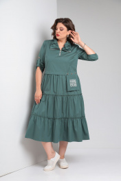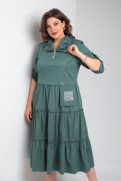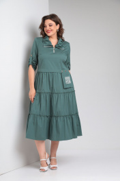 Платье из хлопка с воланами и нагрудными выточками Rishelie 829 морская_волна