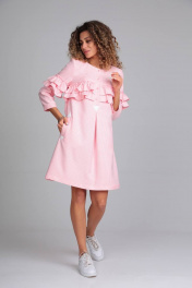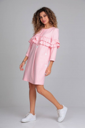 Платье прямого силуэта с рюшами и карманами, с декором Rishelie 905 розовый