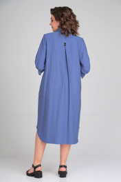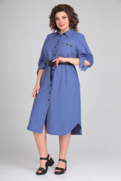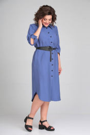 Платье-рубашка прямого силуэта с центральной застежкой на петли пуговицы. Воротник на стойке, 2 нагрудных кармана с декоративной нашивкой.Спинка со встречной складкой по центру спинки, выделена строчкой декоративной нашивкой. Рукава с манжетами с декоративным вырезом на резинке. Низ платья закруглен в боковых швах, также в боковых швах имеются потайные карманы. Платье дополнено съемным поясом