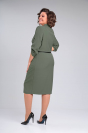 Платье прямого силуэта из плательной ткани хорошо маскирует изъяны и подчёркивает все прелести фигуры. Горловина оформлена отложным воротником на стойке. По переду выполнена планка с застежкой на петли и пуговицы. В нагрудных кокетках вшиты декоративные молнии, подчёркивая красоту линий. Модель отрезная по линии талии, в боковых швах закругленные карманы. По центру шва разрез, который добавляет особый шарм. Рукав 2-х шовный втачной 3/4 с патой. В жаркое время рукав можно поднять вверх и закрепить плату на пуговицу. Пояс подчёркнет линию талии и образ классический превратится в модную, стильную, стройную модель.
