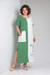 Максимальное летнее ленгое платье с карманами Rishelie 948 зеленый - фото 1
