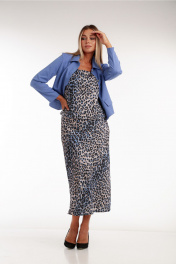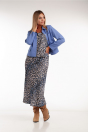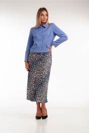Трехпредметный комплект: топ, юбка на резинке и укороченный жакет с леопардовым принтом Rishelie 970 голубой