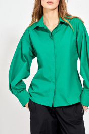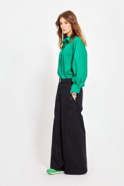 Блуза: - полуприлегающий силуэт - спущенная линия плеча - застёжка на пуговицы по потайной планке - рукава двухшовные с манжетами - воротник рубашечный.
