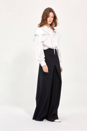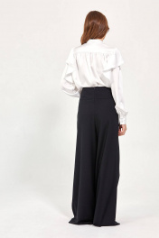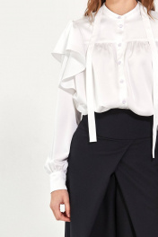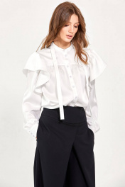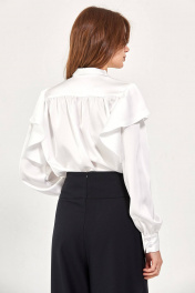 Блуза: - расширенный силуэт - рукава втачные на манжете - воланы в проймах - кокетки спереди с сзади с небольшой сборкой - застёжка на пуговицы по планке