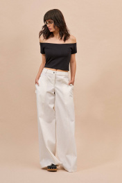 Топ: - приталенный силуэт - короткие рукава-реглан - широкий вырез горловины, открывающий плечи