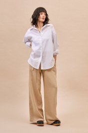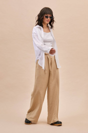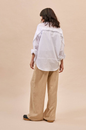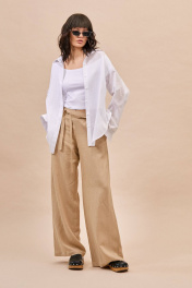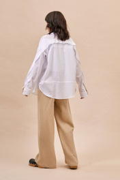 Блуза: - прямой силуэт - рубашечный воротник - потайная застежка на пуговицы - спущенная линия плеча - широкая складка по спинке и задней части рукавов - горизонтальный подрез на спинке ниже линии талии - манжеты с застежкой на пуговицу - фигурная линия низа