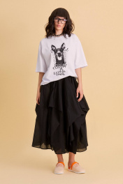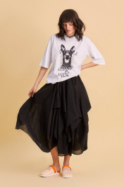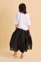 Юбка: - расклешённый силуэт - пояс на резинке - спереди и сзади средние швы и рельефы - по рельефам расклешение и защипы - линия низа фигурная - в боковых швах карманы - на подкладке