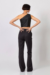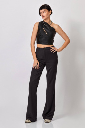 Брюки-клёш от колена: -полуприлегающий силуэт - клёш от колена -в боковых швах карманы -верх с поясом и шлёвками -застёжка на молнию и петлю с пуговицей на поясе
