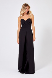 Брюки-палаццо: - прямой силуэт, расширенный к низу - высокая посадка - широкий притачной пояс - 2 широких складки, направленные к центру - застежка-молния в среднем шве заднего полотнища брюк - боковые карманы.