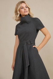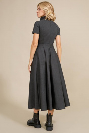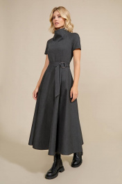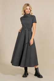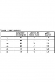 Роскошное длинное платье из плотного трикотажного полотна. Силуэт приталенный, отрезное по талии, с объемной юбкой А-образной формы. Рукав укороченный, типа реглан, оригинальный высокий цельнокроеный воротник-стойка. Потайная застежка-молния от горловины до талии по центру спинки. Талия подчёркнута поясом с застежкой на большое металлическое кольцо. 42 - ОГ 86 ОТ 76 ДЛ 128 44 - ОГ 90 ОТ 80 ДЛ 128 46 - ОГ 94 ОТ 84 ДЛ 128