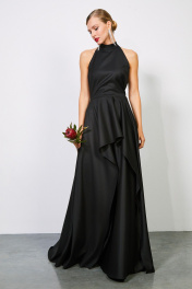 Платье: - приталенный силуэт - воротник-стойка - срез проймы - реглан, без рукавов - по переду фигурные рельефы - застёжка сзади на потайную молнию - юбка «солнце» ассиметричной длины - верх изделия на подкладке - дополнительная юбка покроя ""полусолнце"" на подкладке. Может служить самостоятельным предметом гардероба - платье легко сочетать с брюками или шортами из вашего гардероба .