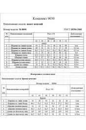 Жакет: - полуприталенный силуэт - пиджачный воротник - спереди вытачки - рукава втачные двухшовные - проезные карманы - застежка на кнопки - пояс в комплекте - на спинке средний шов и высокая шлица - на подкладке - внутренние карманы - сзади вышивка и кожаная аппликация с логотипом бренда и пата с полукольцом Брюки: - расширенный книзу силуэт - пояс со шлёвками под ремень - застёжка спереди: молния и пуговица - спереди карманы