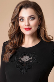 Платье женское относится к нарядной торжественной одежде, но может использоваться и для повседневной носки. Платье женскеое полуприлегающего силуэта, длиной за колено. Перед с двумя нагрудными и двумя талиевыми вытачками, декорирован художественной вышивкой с 17-ю бусинами. Спинка с двумя талиевыми вытачками, средним швом, заканчивающимся шлицей. Застежка на потайную тесьму-молнию в среднем шве спинки. Горловина круглая, обтачная, без воротника. Рукав втачной, одно шовный, длиной до локтя. Платье с плечевыми накладками. Длина спинки 102 см. Длина рукава 30 см.