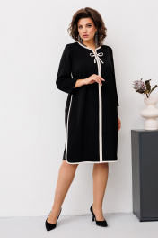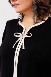Платье женское предназначено для повседневной носки. Платье женское, полу прилегающего силуэта, длиной за колено. Перед с2-мя нагрудными вытачками и средним швом. Спинка с 2-мя таллиевыми вытачками средним швом. Платье с отрезными бочками. Горловина фигурная. Срезы горловины переда, среднего шва переда, низа платья, боковые швы переда и спинки обработаны косой бейкой из отделочной ткани, ширина бейки 1,2 см. Вырез горловины декорирован пришивным бантом из отделочной ткани и пришивной стразой. Низ платья фигурный. Рукав втачной, одно шовный, длиной 7/8. Платье с плечевыми накладками. Длина спинки 100 см, длина рукава 49 см.