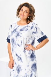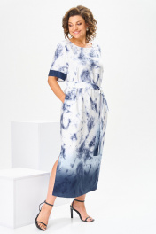 Платье женское, коктейльное. Платье женское прямого силуэта, длиной до нижней части икры. Перед с 2-мя нагрудными вытачками. Спинка цельнокроеная. Горловина круглая, обточная, без воротника. Боковые швы с карманами; внизу с разрезами. Рукав втачной короткий одно шовный с притачной отложной манжетой. Платье с плечевыми накладками. К платью прилагается съёмный пояс. Длина спинки платья 130 см. Длина рукава 29 см.