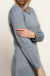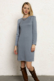 Платье полуприлегающего силуэта. Переплетение жаккард. По низу рукава, низу изделия и бейке горловины вплетена металлизированная серебристая нить. Длина платья - 93см. Длина рукава - 58см