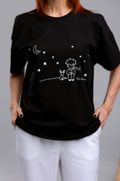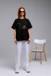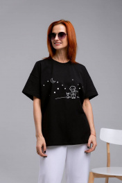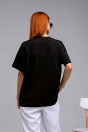 Майка оверсайз с коротким рукавом из хлопка и трикотажа Romgil 240ЛХАМ черный