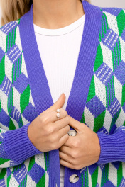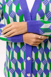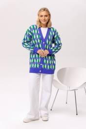 Кардиган в мультиколоре из трикотажа для стильных образов Romgil 826ПТЗ фиолетовый,изумрудно-зеленый,белый