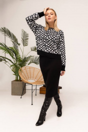 Костюм двойка, который состоит изджемпера и юбки "карандаш". Джемпер можно носить самостоятельно или блузкой, рубашкой. Юбка (без карманов) облегающего силуэта, комфортной длины, эластичный пояс для обеспечения оптимальной посадки. Костюм выполнен из высококачественной пряжи. Трикотаж эластичный, плотный, не просвечивает. Джемпер и юбку легко можно комбинировать с любой другой одеждой и обувью или носить по отдельности. Например, джемпер можно надеть с джинсами. Юбку сочетать с джемпером из нашей коллекции или водолазкой Romgil. Костюм базовый, а главное универсальный. Костюм идеально подойдет для повседневного образа, офисного, вечернего и для отдыха._x000D_