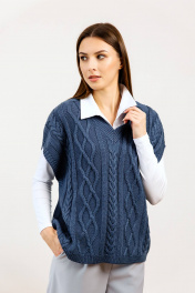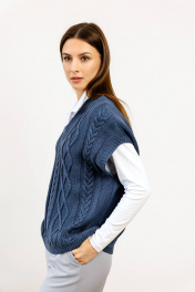Классический женский жилет должен быть в гардеробе любой модницы. Крупная трикотажная вязка и вывязанный орнамент, делают изделие максимально модным и стильным. Жилетка подходит для школы, офиса, прогулок, деловых встреч, повседневной носки. Вязаный жилет является выбором мам, которые хотят сделать школьный образ своей девочки сдержанным и модным. Связанный жилет имеет слегка укороченный силуэт, широкие рукава. Свободный крой не сковывает движения. Большой плюс жилетки в том, что она просто надевается и снимается. V-вырез декорирован манжетам крупной вязки. Представленная модель в составе имеет шерсть. Ткань отлично держит форму, не растягивается. Шерстяной жилет легко очищается от загрязнений. При правильном уходе изделие прослужит вам долго. Жилетку можно носить с рубашкой, футболкой, платьем и на голое тело. В любой случае ваш образ будет самым стильным и запоминающимся._x000D_