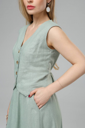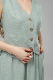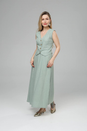 Элегантный костюм из льна и вискозы оттенка светлая полынь Этот стильный и лёгкий костюм, состоящий из блузки и юбки-макси, станет идеальным выбором для создания женственных и утончённых луков. Нежный цвет полыни и натуральный материал подарят вам ощущение свежести и комфорта в тёплое время года. Описание блузки: Актуальный и универсальный оттенок, который легко сочетается с другими элементами гардероба; Материал: лён и вискоза— лёгкая, дышащая ткань, обеспечивающая комфорт в течение всего дня; Дизайн: блузка с V-образным вырезом, пуговицами спереди , придающими образу романтичность. Описание юбки: Гармонично дополняет блузку, создавая единый ансамбль; Материал:лён и вискоза — приятная на ощупь ткань, которая отлично держит форму; Дизайн: юбка-макси с высоким поясом и свободным кроем, подчёркивающая женственность и лёгкость. Универсальность: Идеально подходит для офиса, прогулок, встреч с друзьями или торжественных мероприятий. Костюм легко дополнить аксессуарами, чтобы создать как строгий, так и романтичный образ. Идеальный выбор для тех, кто ценит стиль, комфорт и натуральные материалы! Этот костюм станет незаменимой частью вашего гардероба.