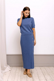 Юбка из хлопкового трикотажа с высокой посадкой и имитацией плиссе Romgil РВ0039-ХЛ2 индиго