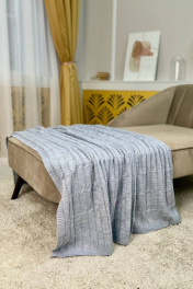 Качественный вязаный серый плед в объемной вязке косы Romgil РВ0064-АК6 светло-серый
