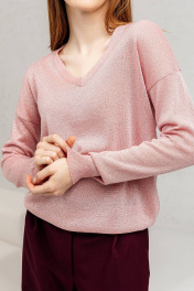Джемпер из хлопка с металлизированной нитью Romgil РВ0140-ХМ5 розово-коралловый,серебро