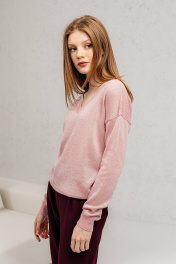 Джемпер из 100% дышащей и натуральной пряжи вывязан гладким переплетением! Прямой силуэт, спущенное плечо, рукав длинный, горловина V-образная. Металлизированная нить в тон пряжи вплетена таким образом, что видна и блестит с лицевой стороны изделия , а основная нитка хлопка вплетена с изнаночной стороны. Он мягкий и очень приятный к телу, не колется! Этот джемпер нарядный сам по себе, так что после работы смело иди на встречу с подругой в кафе.